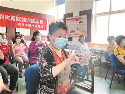 ■大枣园社区居民在做手指操,以延缓认知症的发生进程。 郭菁荔 摄