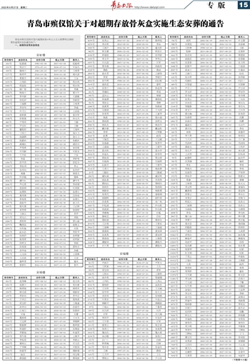 青岛市殡仪馆现对馆内超期存放4年以上无人续费和认领的骨灰盒相关信息通告如下: