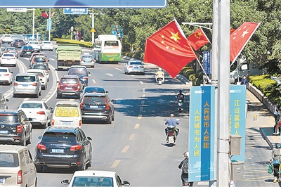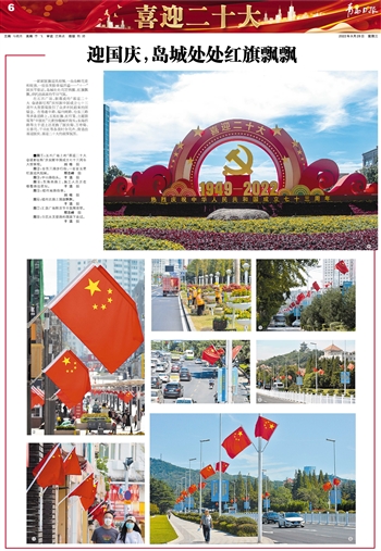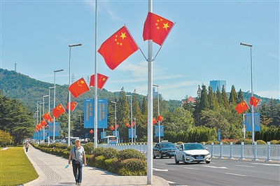 一面面国旗迎风招展,一朵朵鲜花竞相绽放,一张张笑脸幸福洋溢……“十一”国庆节临近,岛城处处花团锦簇、红旗飘飘,烘托出浓浓的节日气氛。