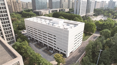 小小停车位,关联大民生。作为我市目前规模最大的单体机械式智能立体停车库,胶州市行政西楼停车场位于胶州市行政中心区北京路以南,天津西路以西,占地面积约6.82亩,建筑面积9271.26平方米。停车场分为地下2层、地上8层,其中地下为钢筋混凝土结构,地上为钢结构,停车场整体采用南进北出流线,设计停车设备8套,提供车位数量543个。