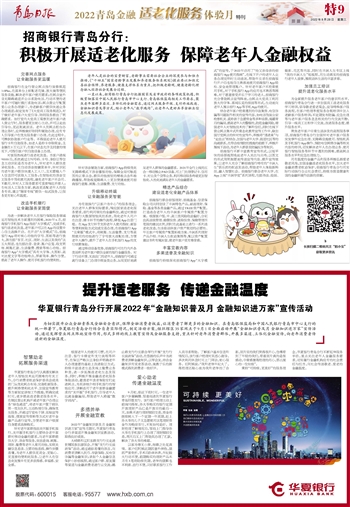 用有温度的金融产品和服务积极弘扬爱老敬老风尚,加强金融适老化服务水平,加大老年金融消费者权益保护,招商银行青岛分行用实际行动践行企业社会责任,持续为营造健康和谐的金融环境作出新的贡献。