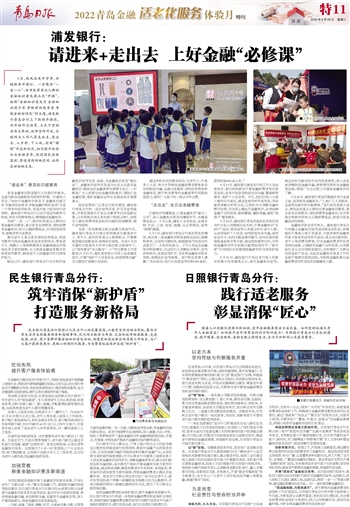 9月,秋风送爽开学季,丹桂飘香开课忙。一堂聚焦“一老一小”、新市民等重点人群的金融知识普及课正式“开课”,按照“金融知识普及月 金融知识进万家 争做理性投资者 争做金融好网民”的主题,浦发银行青岛分行上下联动齐推进,内外协作总动员,立足厅堂的宣传主阵地,延伸宣传外延,全辖网点工作人员走出去,进企业、入乡村、下工地,创新“课程”内容和形式,切实提升社会公众金融素养、促进国民金融监控、营造清朗网络空间、涵养良好金融生态。