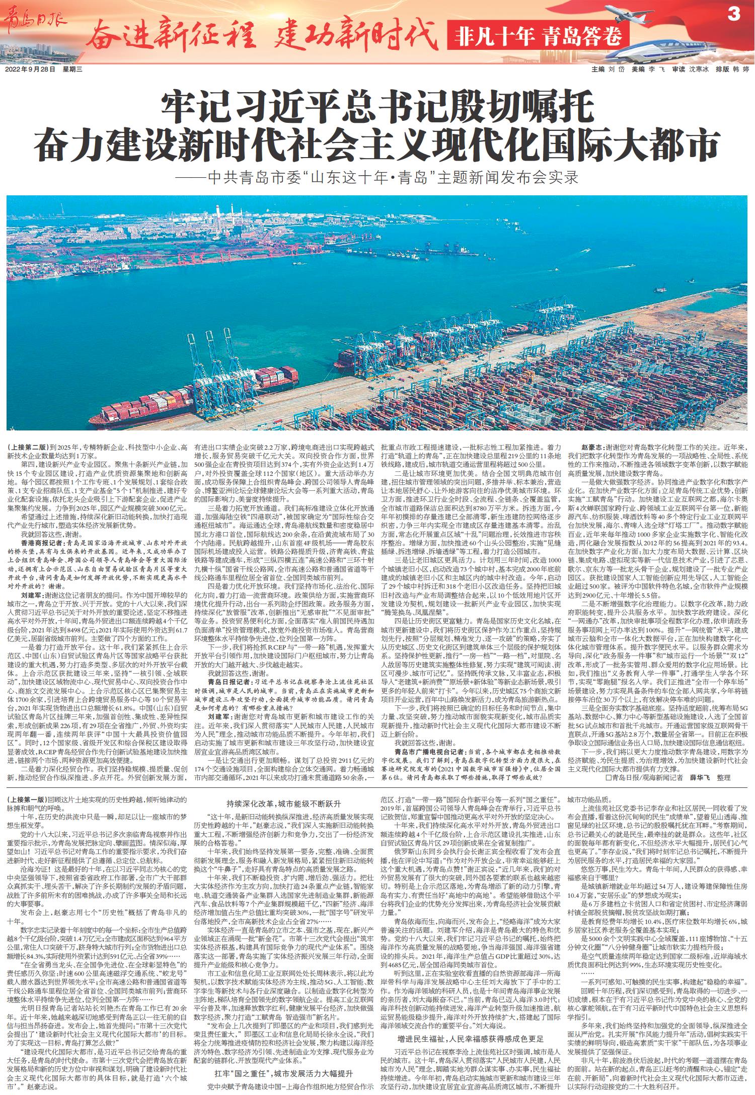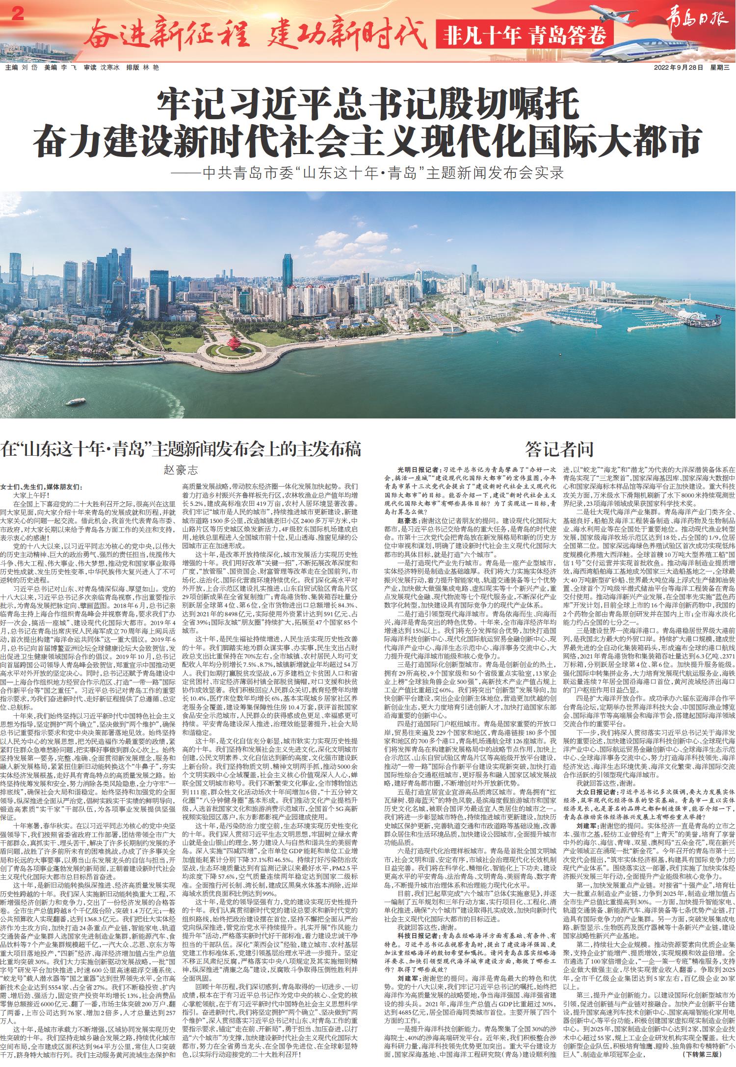 中共青岛市委“山东这十年·青岛”主题新闻发布会举行
