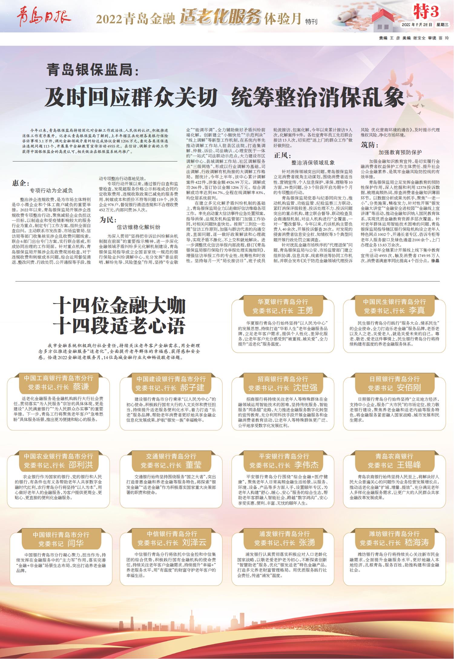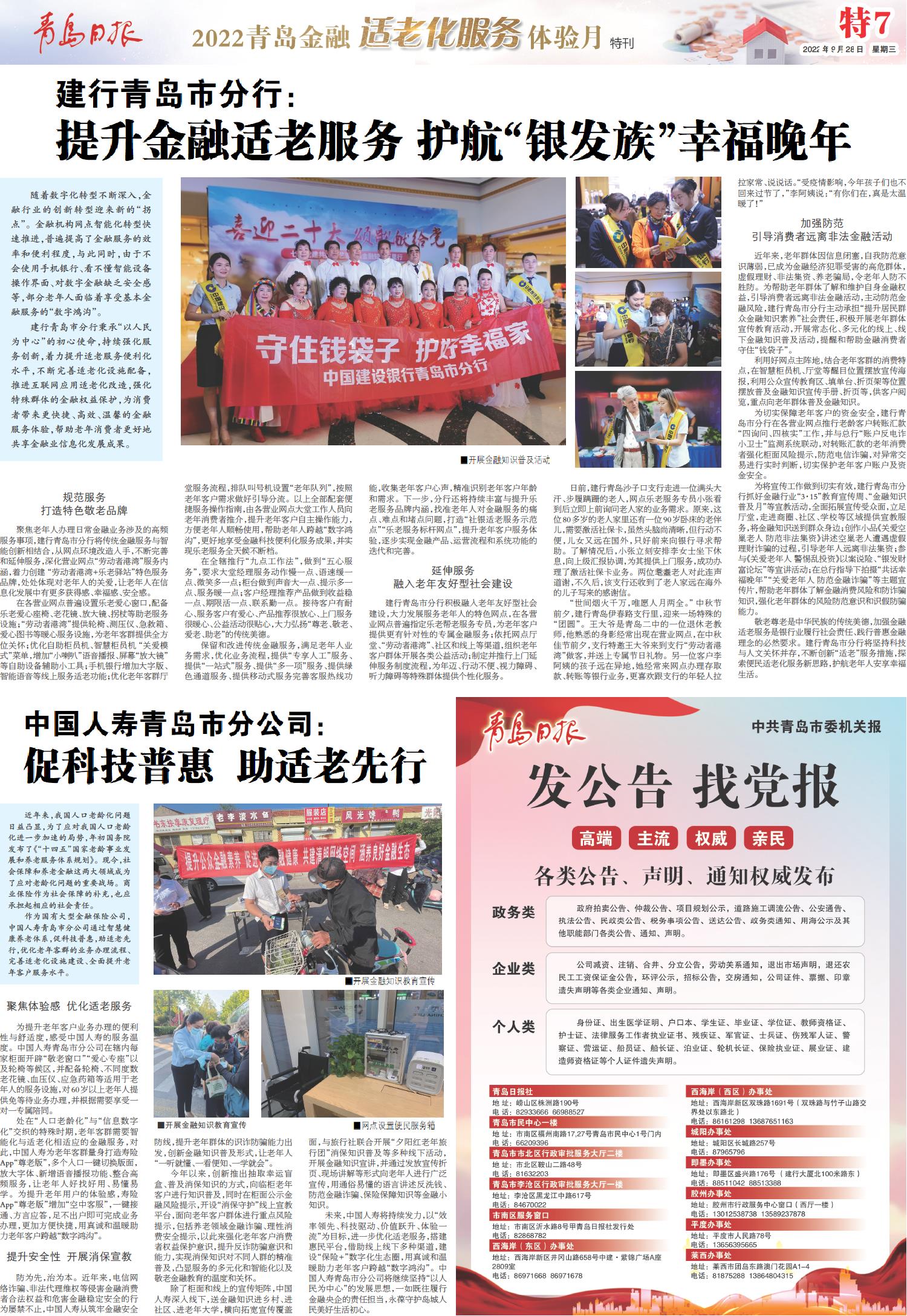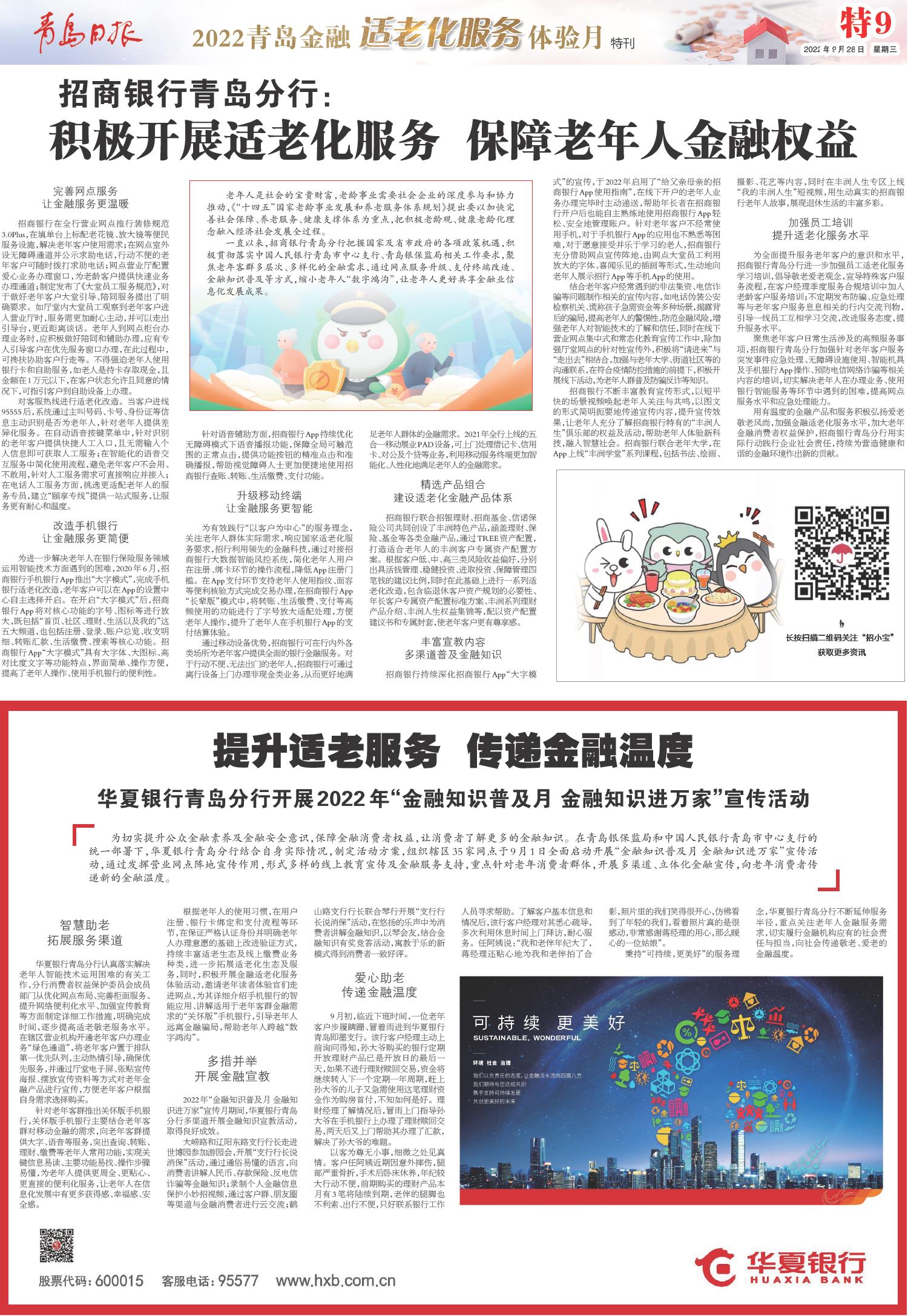 适老服务再升级 青岛银行交出敬老服务温情答卷