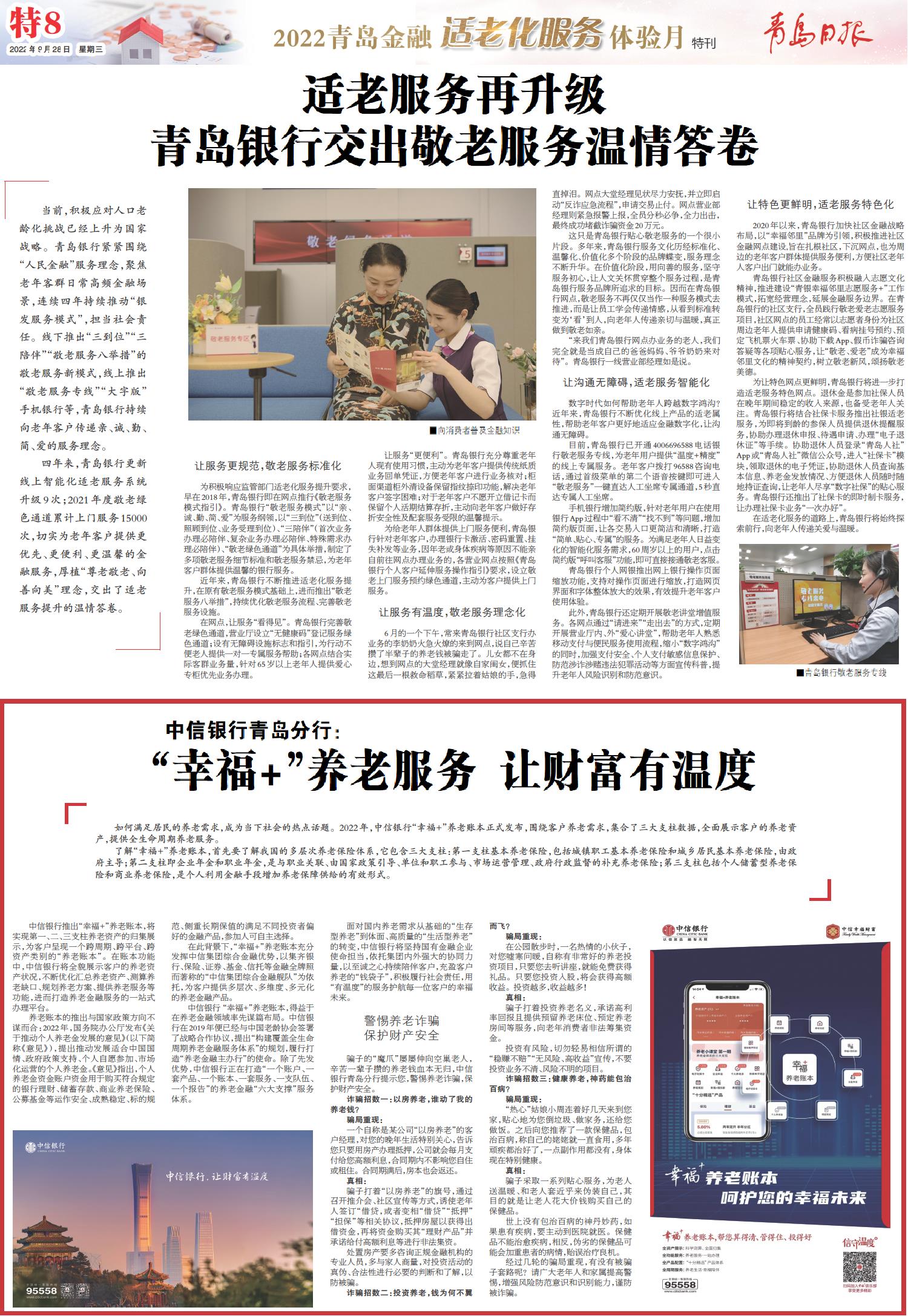 中信银行青岛分行:“幸福+”养老服务让财富有温度
