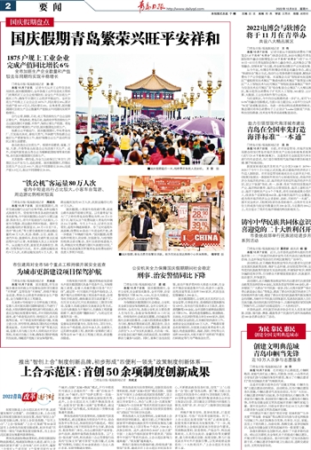 分行业看,钢铁、石化、化工等连续性生产企业坚持正常生产。青岛炼化、青岛石化、海湾化学等连续性生产企业国庆期间不放假、不停产,保持正常生产经营。青岛特钢为完成年粗钢生产计划,国庆假期也加班生产。