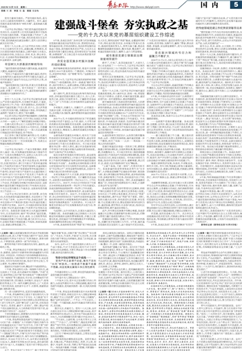 5年来,传统领域基层党建工作在改革创新中不断加强,在完善体制中持续深化,为完成中心任务、服务党和国家工作大局提供了有力保证,更好彰显了组织功能、组织优势、组织力量,发挥了走在前、作表率的示范引领作用。