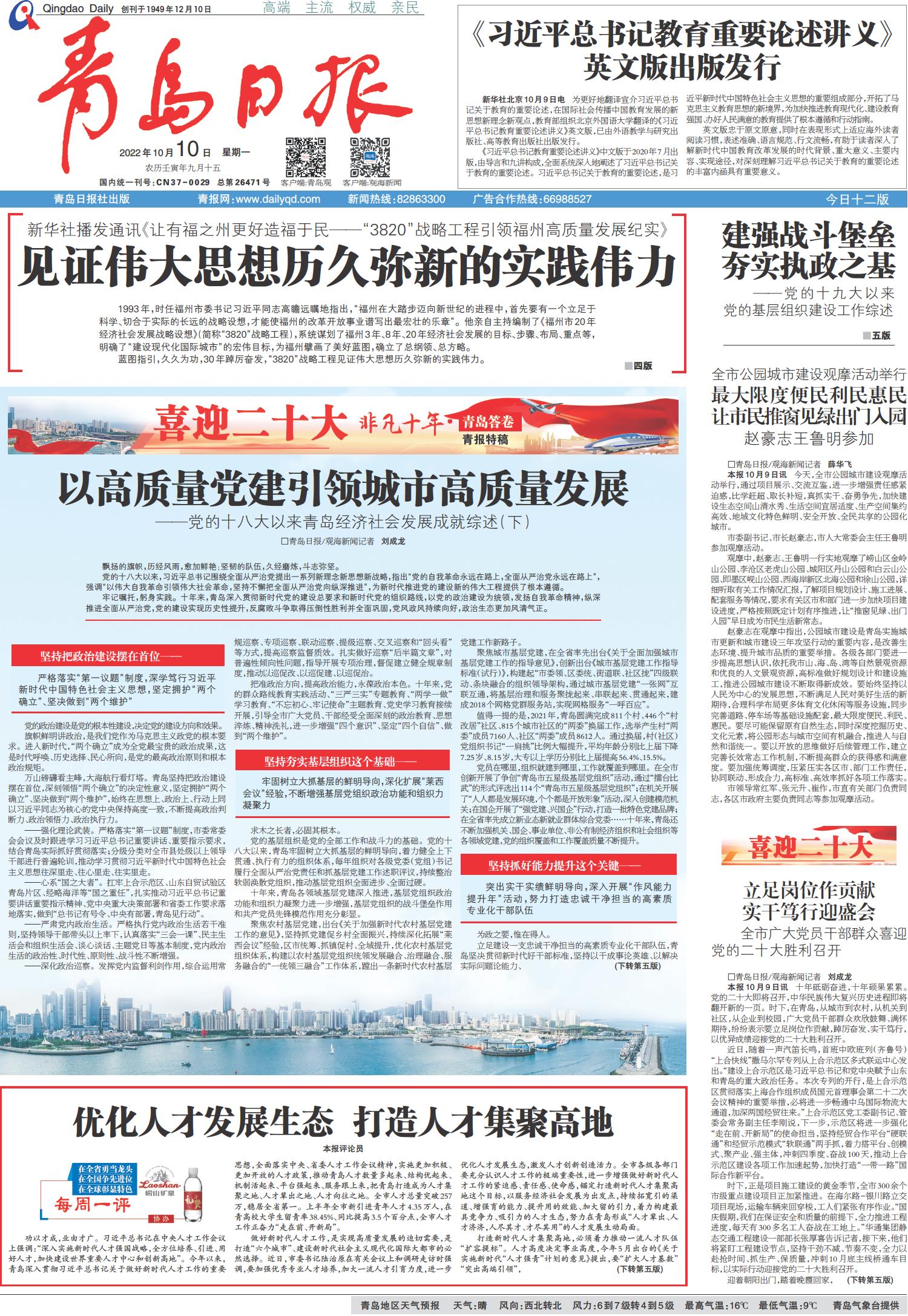 以高质量党建引领城市高质量发展