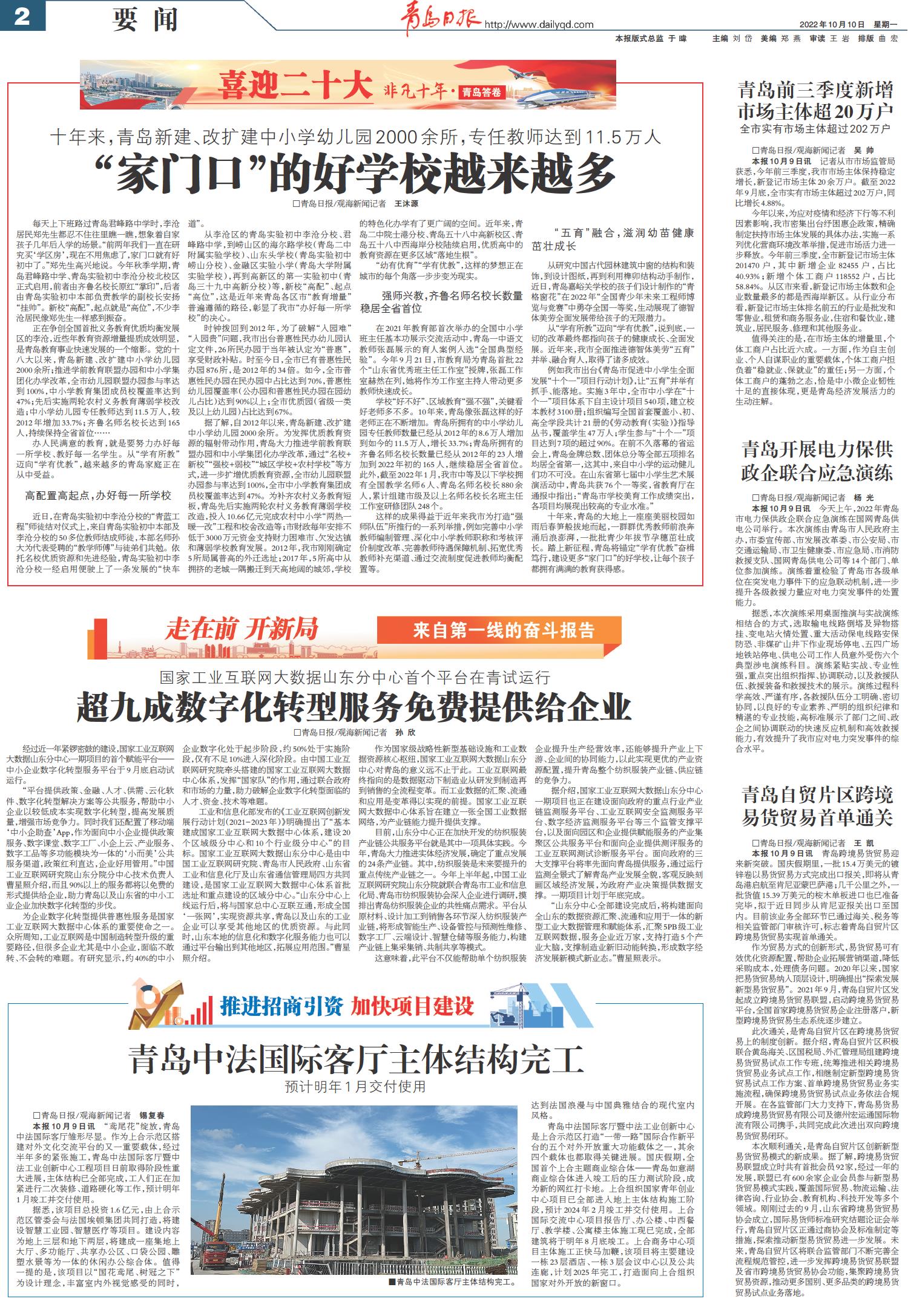 青岛前三季度新增市场主体超20万户