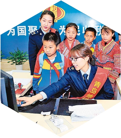 ■贵州省海尔希望小学的师生走进原青岛市地税局崂山分局办税服务厅。