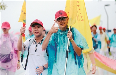 ■青岛五十八中教育集团举行新生30公里拉练。 韩 星 摄