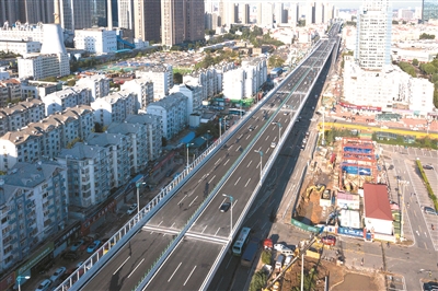 ■辽阳路(南京路-福州路段)交通结建工程主线桥通车,这是今年全市首个实现主线通车的市级市政道路建设重点项目。 刘 栋 摄