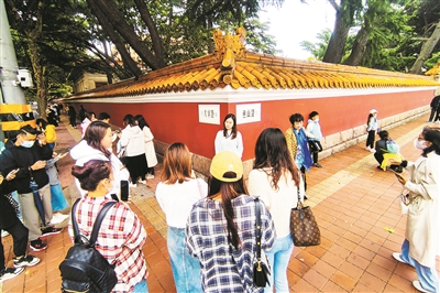 图④:国庆假期,大学路鱼山路网红角人气十足。于 滈 摄