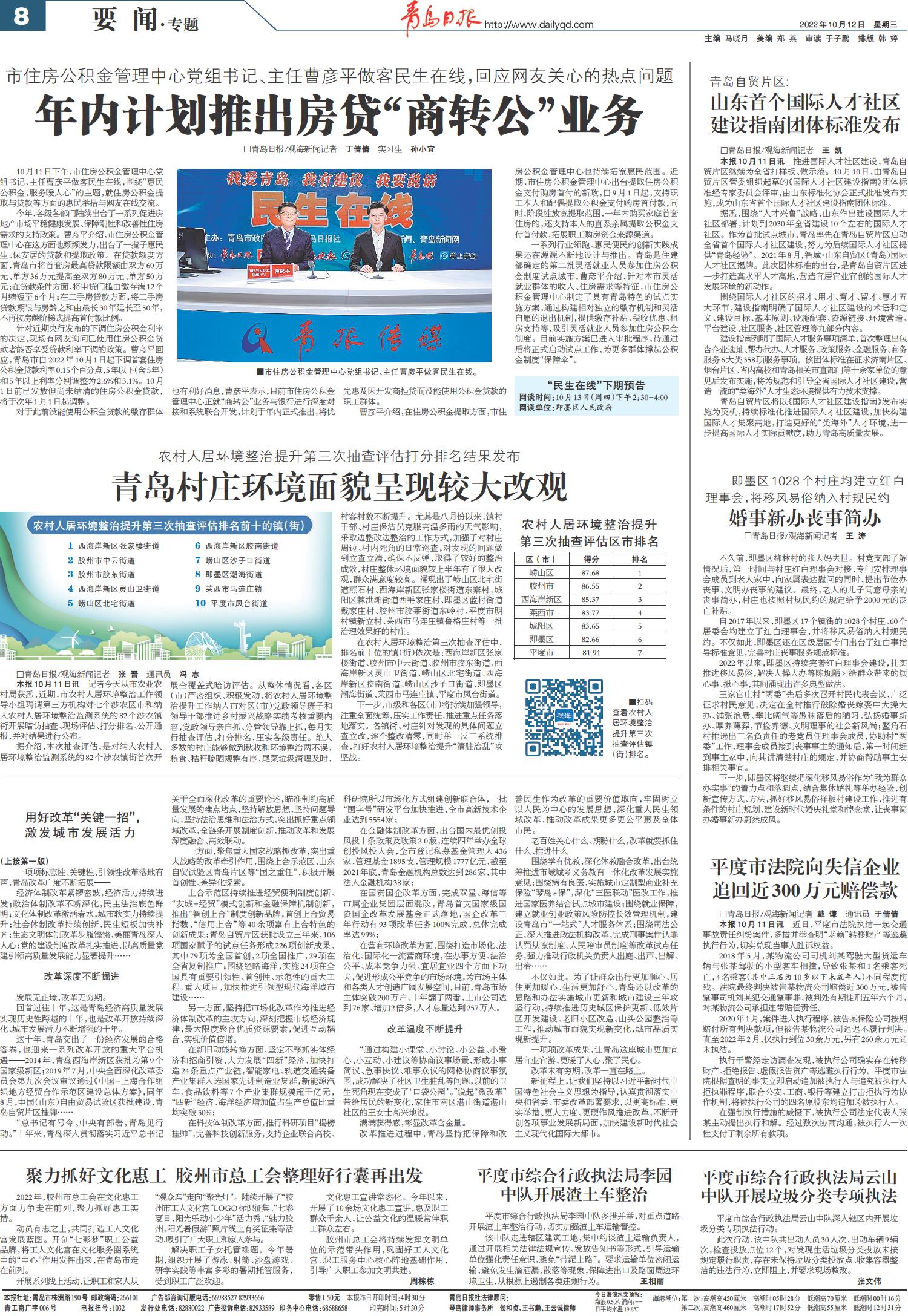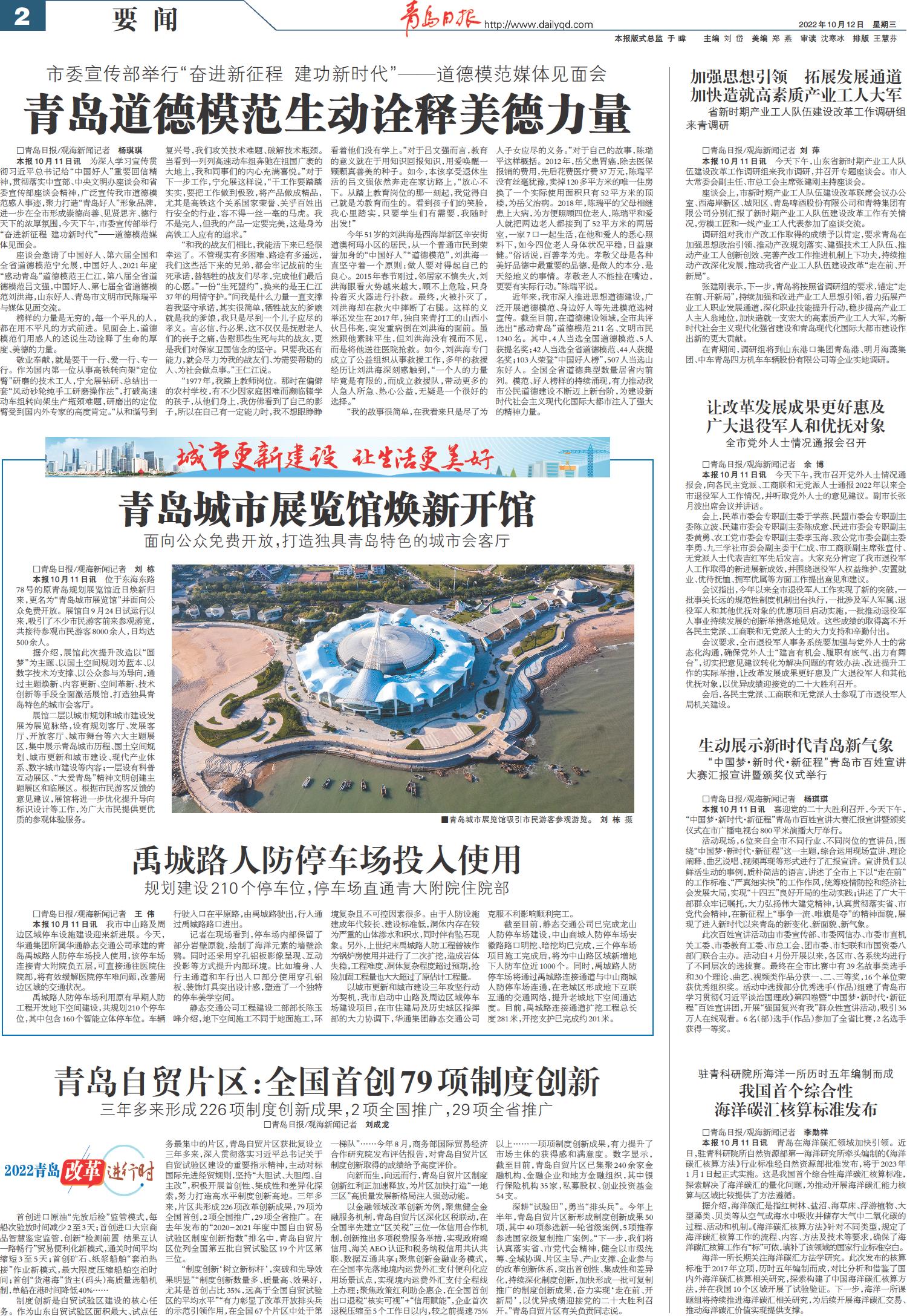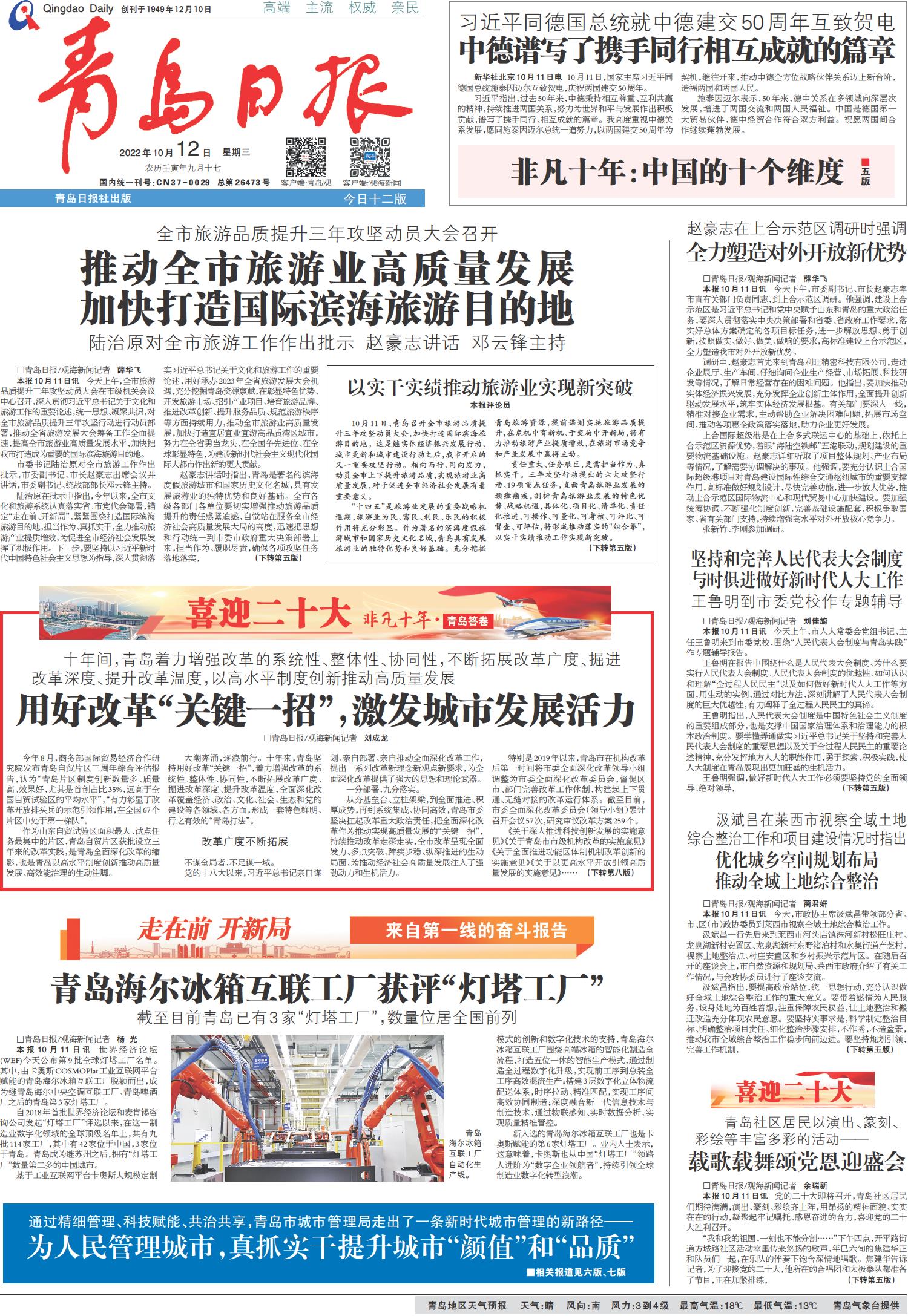 01 首版 02 要闻 03 喜迎二十大 04 青岛日报聚焦 05 国内 06 专版 08 要闻·专题 09 体坛·文旅 10 学习思考 11 专版 12 楼市