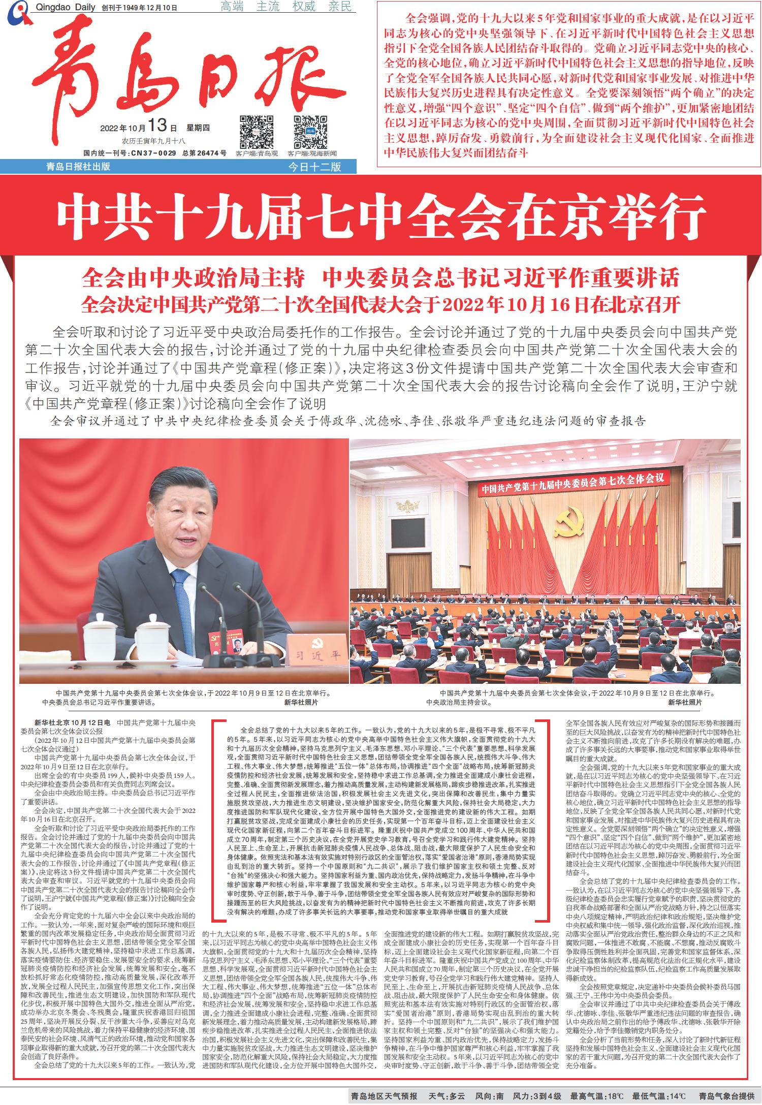 中共十九届七中全会在京举行