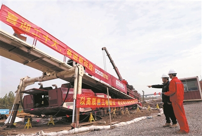 本报10月14日讯 一边是动车呼啸而过的青盐高铁,一边是车辆川流不息的青兰高速。在胶州市九龙街道大沽河东西两岸,胶州湾海底天然气管线工程的关键性控制节点——长达2482米的大沽河定向钻穿越工程正在24小时不间断加紧施工,这也是国内最长的大口径高压城镇燃气管线岩石定向钻穿越。