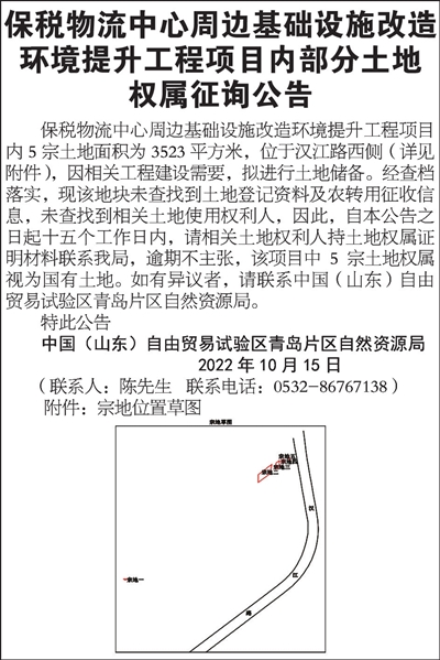 保税物流中心周边基础设施改造环境提升工程项目内部分土地权属征询公告