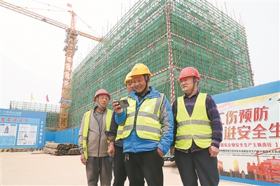 ■在山东港口航运金融中心项目建设工地,中青建安集团组织党员和员工代表收看党的二十大开幕会直播。 于 滈 摄