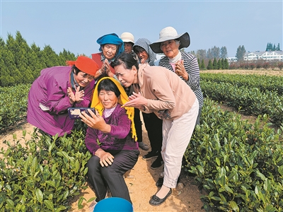 ■在西海岸新区海青镇的一处茶园内,茶农们用手机观看党的二十大开幕会直播。杨佳乐 摄