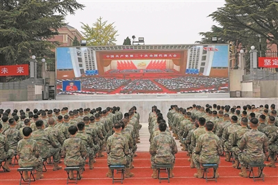 ■北部战区海军某训练基地官兵集中收看党的二十大开幕会直播。 王远方 摄