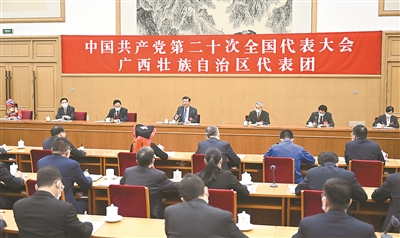 10月17日,习近平同志参加党的二十大广西代表团讨论。 新华社照片