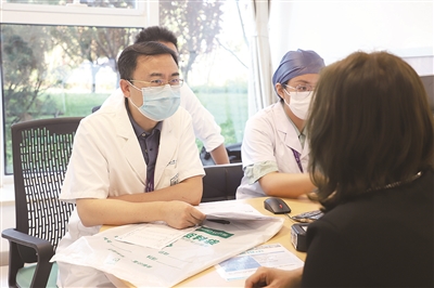■北京大学人民医院胸外科主任医师李剑锋(左一)在青岛坐诊。