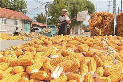 ■10月21日,即墨区栾埠村村民在晾晒脱粒后的玉米。杨志文 摄
