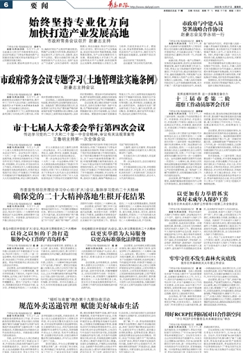 本报10月26日讯 今天上午,由市政协委员联络活动工作室、市12345政务服务便民热线、青岛日报社共同搭建的“倾听与商量”协商平台围绕“如何规范外卖送递管理”主题举办第十九期协商活动,本期协商活动由市政协社会和法制委员会承办。市政协副主席姜巧珍出席活动。
