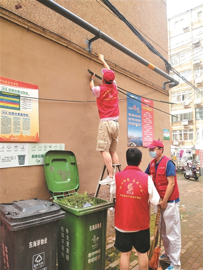 ■四方街道开展“回头看”,清理新出现的小广告。 李海艶 摄
