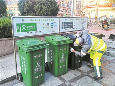 ■市北区环卫工人定期擦洗垃圾桶,巡查冒溢桶。 姜腾飞 摄