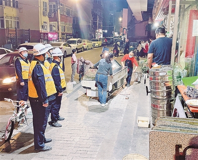 ■“局街联动”整治占路烧烤。 市北区综合行政执法局供图