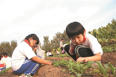 ■青岛蓝谷高新区东皋埠小学的学生们在悉心呵护自己的“责任田”。