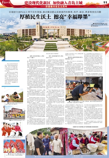 撤市设区以来,即墨深入践行共享发展理念。区级财力80%以上用于民生领域,一笔笔沉甸甸的“真金白银”转化为民生红利,人民福祉持续增进,群众获得感、幸福感和安全感更加充实,书写了一份温暖人心的民生答卷。