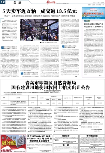 五日展期,在呈现了丰富精彩的行业科技的同时,本届展会的市场表现也保持了品牌展会的稳定输出。“现场订单近10000台,成交额逾13.5亿元。”2022第二十一届青岛秋季国际车展的这样一份成绩让人眼前一亮。