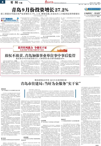 “问”企业所需,“解”企业之急,在“成事争一流”上锤炼过硬作风能力,保持“事争一流、唯旗是夺”的进取意识,拉高标杆、敢于攻坚、善于创新、勇当龙头、争先进位、不断开创各项工作新局面。今年以来,青岛市住房和城乡建设局以“实干家”的服务理念,创新驱动的服务方式,刀刃向内、自我革命的坚定态度,出实招、谋新策,助推建筑行业高质量发展,一次又一次彰显着青岛市住建系统谋事唯实、执行务实、成效求实、真抓实干促发展的优良作风和过硬能力。