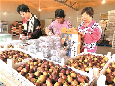 ■段泊岚“果香柳韵”,以无花果种植、加工为主,促进文旅融合发展。图为孙家屯村村民在包装无花果鲜果。