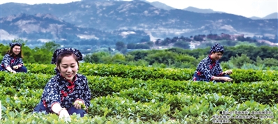 ■鳌山卫“茶香梅谷”,重点发展茶叶、梅花种植加工、休闲观光产业。图为村民在采摘茶叶。