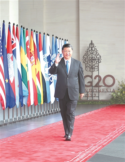 ■当地时间11月15日,二十国集团领导人第十七次峰会在印度尼西亚巴厘岛举行。国家主席习近平出席并发表题为《共迎时代挑战 共建美好未来》的重要讲话。这是习近平步入会场。