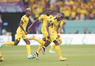 ■厄瓜多尔队球员恩纳·瓦伦西亚(右一)包办两粒进球。 新华社照片