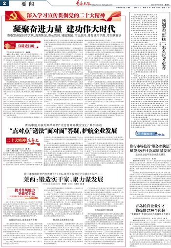 党的二十大报告提出,“树立大食物观,发展设施农业,构建多元化食物供给体系”。《行动方案》的出台,是青岛贯彻落实党的二十大精神的具体体现。只要我们不断努力突破瓶颈,就能让预制菜产业这一“蛋糕”,不仅看起来美,吃起来也更香。