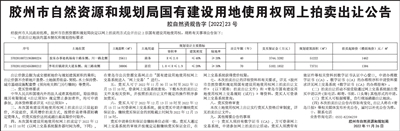 胶州市自然资源和规划局国有建设用地使用权网上拍卖出让公告
