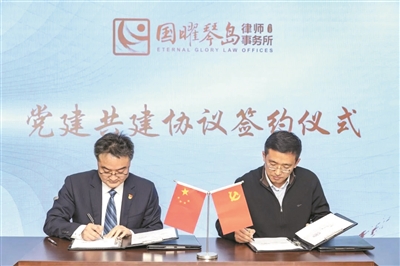 ■近日,国曜琴岛(青岛)律师事务所党委和中国银行青岛市南支行党委党建共建签约仪式在该律所会议室举行。律所党委书记、主任王书瀚和中国银行青岛市南支行党委书记、行长李绪平代表共建双方签订党建共建协议书、廉洁伙伴协议书。与会人员还参观了该律所党史活动室、所史陈列室。双方一致表示,今后,要推动共建双方组织生活共同参与、党群活动共同开展、党务能力共同提升,持续推进党风廉政建设,建立廉洁、诚信、共赢的合作关系。