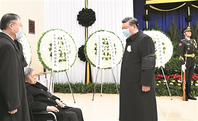 12月5日,江泽民同志的遗体在北京火化。这是习近平向江泽民同志的夫人王冶坪和亲属表示深切慰问。 新华社照片
