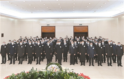12月5日,江泽民同志的遗体在北京火化。这是习近平、李克强、栗战书、汪洋、李强、赵乐际、王沪宁、韩正、蔡奇、丁薛祥、李希、王岐山、胡锦涛等到中国人民解放军总医院为江泽民同志送别。 新华社照片