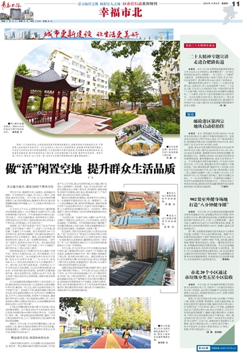 党的二十大报告指出,必须坚持在发展中保障和改善民生,鼓励共同奋斗创造美好生活,不断实现人民对美好生活的向往。市北区坚持以人民为中心的发展理念,紧抓城市更新和城市建设三年攻坚以及争创全国文明典范城契机,大力推动城市闲置空地改造,将违建房变成便民停车场、垃圾场变成篮球场、城市边角地变成口袋公园,为居民增加数十处休憩、健身和活动场所。居民们说:“变化大、亮点多、让人耳目一新,这是市北区城市更新带给我们最直观的感受。”