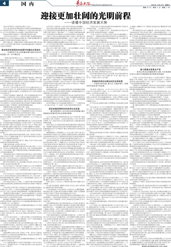 新时代新征程。读懂中国经济,把握中国经济发展大势,就必须以习近平经济思想为指导,在推动高质量发展中,迎接更加壮阔的光明前程。