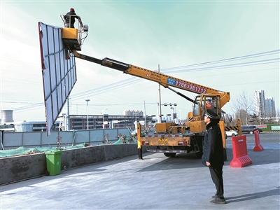 ■即墨区综合行政执法局执法队员查处违法广告。