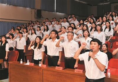 ■全体教职工党员重温入党誓词,不忘教育初心。