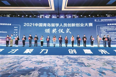 ■“蓝洽会”期间举行的中国青岛留学人员创新创业大赛颁奖仪式。