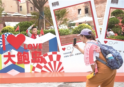 ◀小朋友“打卡”大鲍岛。刘栋 摄